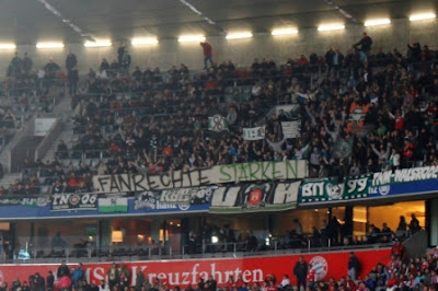 Beim Heimspiel gegen den FC St. Pauli wurde im Stadion durch Spruchbänder erneut auf die Fandemo hingewiesen.